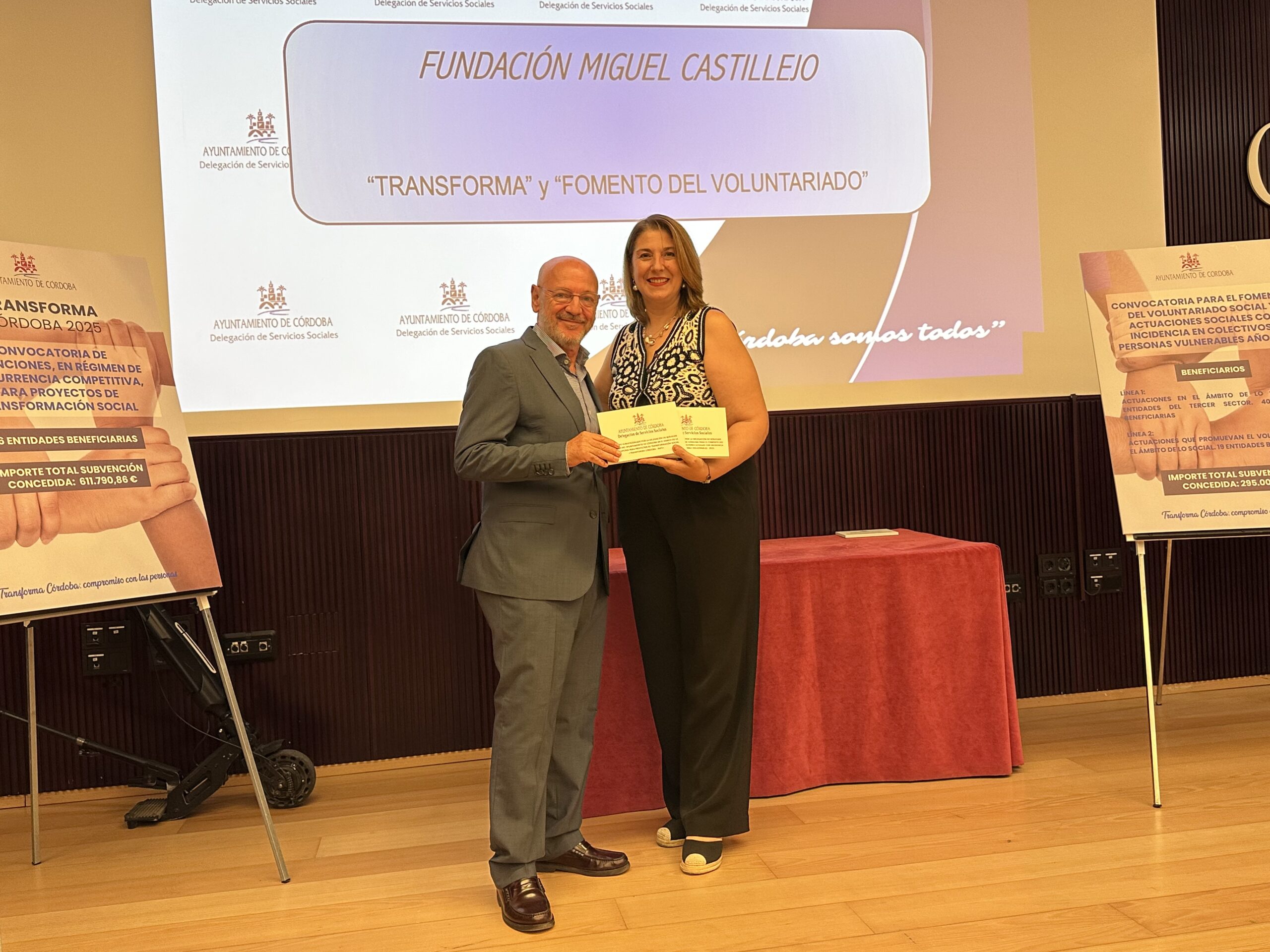 La Delegación de Servicios Sociales del Ayuntamiento de Córdoba entregó el pasado 25 de septiembre las placas acreditativas a las entidades y asociaciones beneficiarias de subvenciones para el fomento del voluntariado social y actuaciones con incidencia en colectivos y personas vulnerables así como para proyectos de transformación social “transforma Córdoba” 2025, entre las que nos encontramos por nuestros proyectos llevados a cabo en el Centro de la Mujer Inmigrante.